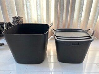 「大きなバケツ型の入れ物です。柔らかいバケツのゴリラタブという商品に似ているものを使っています。洗濯機の前に置いています」(ゆう)