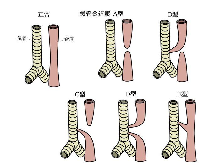 食道閉鎖では、本来つながっていない気管とのつながりがあればそれを閉じる手術も必要です。消化管閉鎖はどの場所で閉鎖があっても「お口からおしりまでの食べ物や水分が流れる通路を確保する」ことが治療の基本です。
