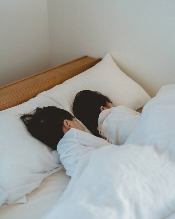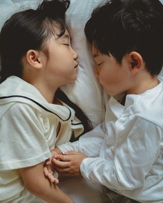 お昼寝中、子どもたちが同じ方向を向いて眠る姿をこっそり撮影。