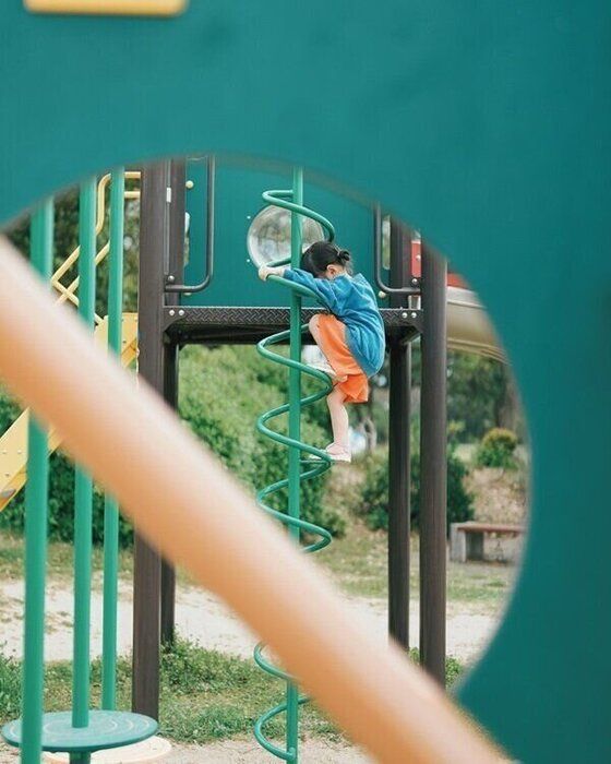 おもしろい形の遊具を見つけたら、線、形、パターンに注目して撮影を!わが子には全力で楽しんでもらいながら、いろいろな角度・距離からとっておきの構図や瞬間を狙ってみて。