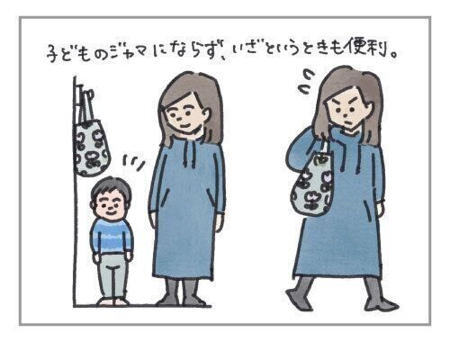 高い位置にかければ子どもの手が届かないので、イタズラされず便利。走り回る子どもが、ぶつかったりすることもなく便利。自分が出し入れする時、かがまなくてよくて便利。床がすっきりして掃除もしやすく気持ちいい。そして、子どものオムツや母子手帳など一式入れておけば、非常用の持ち出し袋としても使える!・・・どうですか、便利じゃないですか?!