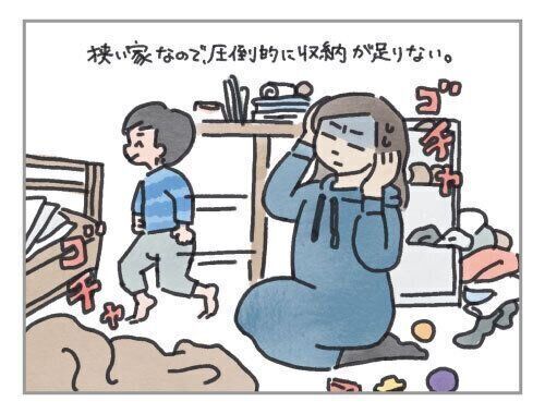 増え続けるオモチャや衣服。子ども用の椅子やオマル。子どもに荒らされないよう使いにくくされた収納。整理の時間がなく増え続ける書類や積ん読・・・。収納を買い足すものの、ものが増える速度に追いつかず。狭い家なので、圧倒的に収納が足りません!!
