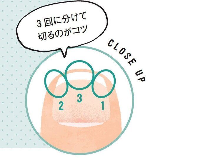 「両サイド、真ん中と3回に分けると切りやすくなります。一度に全部の指のつめを切るのが大変なら、何日かに分けて少しずつ切ってもいいでしょう」(中村先生)