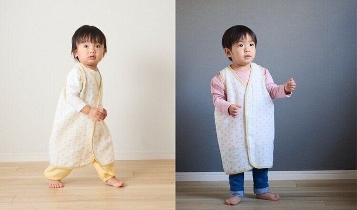 左:着用モデル/1才3カ月、身長80cm 右:着用モデル:2才6カ月、身長86cm